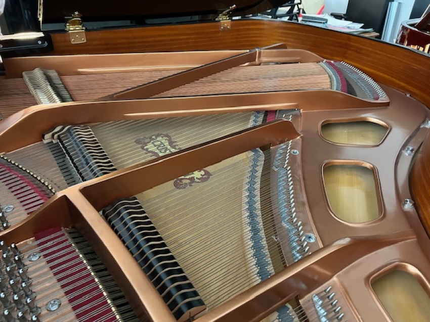 More than that, Cristofori grand pianos have even more exquisite features that enhance any pianist’s experience found only in more expensive larger piano models. For a perfectly seated hammer strike for each note every time, Cristofori grand pianos have special guides called agraffes attached to the iron plate. To produce a more resonant and singing tone in the mid to upper ranges of piano, Cristofori grands include a Duplex Scale that precisely tunes the end section of the strings near where they attach to the plate to vibrate sympathetically with the string speaking length compared to frequently used felt to reduce unwanted dissonance in lesser pianos.