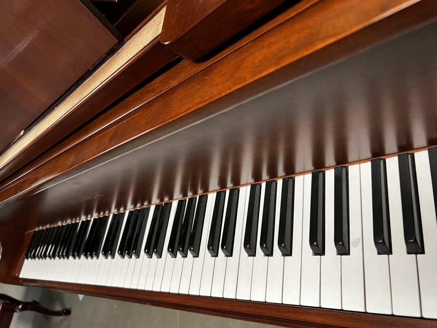 - It is considered a "petite" or "smallest" baby grand piano, measuring approximately 4 feet 7 inches (140 cm) to 4 feet 8 inches in length from the front of the keys to the tail end.